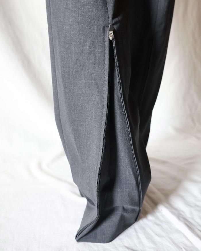 ヒップにジップポケット、ヘムには、裾幅を調整するファスナー付きです。