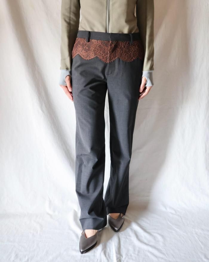 FUMIKA UCHIDA: SUITING LACE WAIST PANTS - CHL/BROWN
