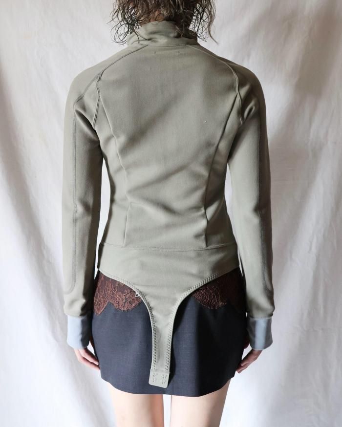 FUMIKA UCHIDA: FRENCH TERRY HALF-ZIP BODYSUIT - SAGE