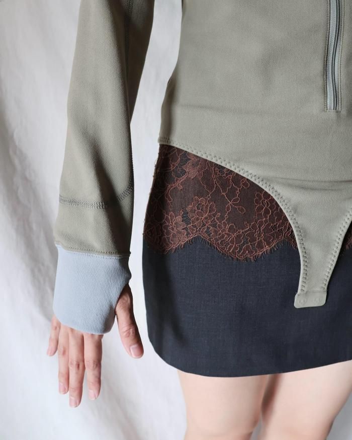 ストレッチ性を実現した織り素材で作るボディースーツ。
