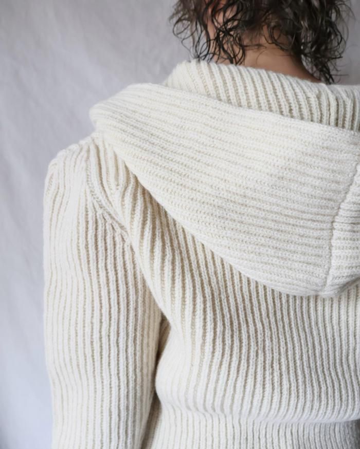 FUMIKA UCHIDA: SHETLAND RIB STITCH HOODED CARDIGAN - IVORY