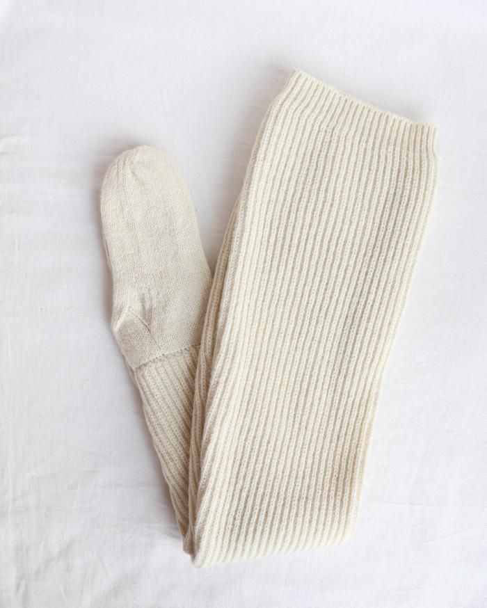FUMIKA UCHIDA: SHETLAND RIB STITCH TIGHT-HIGH SOCKS - IVORY